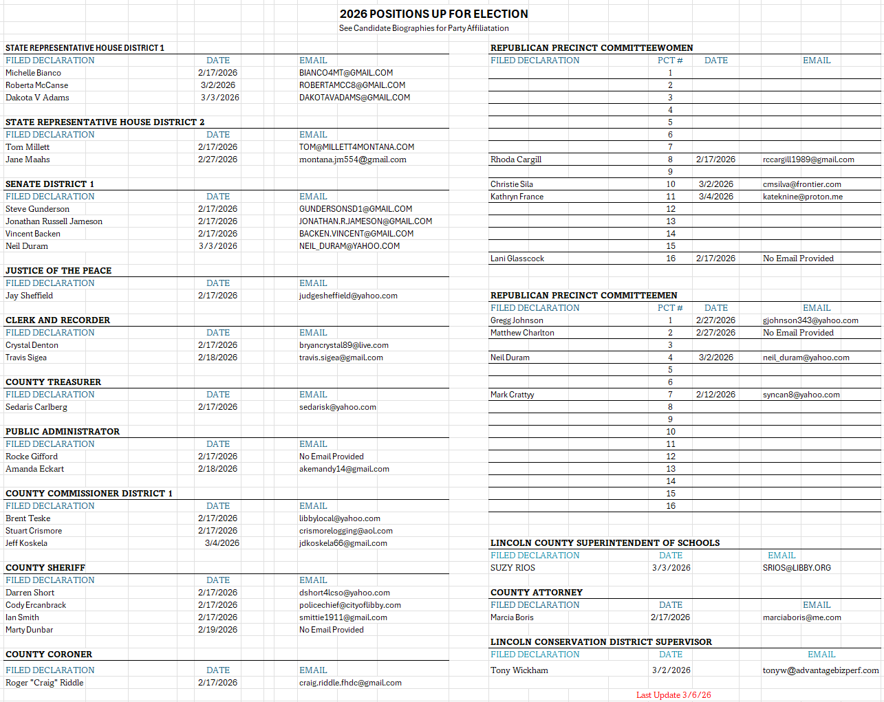 March 4th, 2026: Candidate filing closes at 5:00pm DEADLINE for 2026 Primary Election.